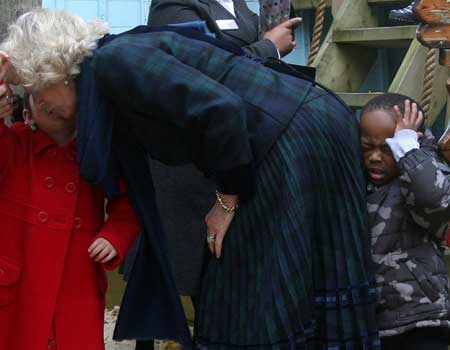 中新網(wǎng)11月21日電 11月19日似乎是卡米拉的“黑色星期四”,在一天之內(nèi)頻頻出丑,首先是用屁股不小心撞到一個3歲男童的腦袋,這個小男孩很不給面子,當場哇哇大哭;接著在出席圣誕燈飾雕像的亮燈儀式時,她又因用力過猛,竟然將繩子拉斷。