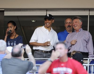 據(jù)報(bào)道,美國(guó)總統(tǒng)奧巴馬當(dāng)晚身穿白色短袖T恤,頭戴白襪隊(duì)球帽。除了第一女兒薩莎和馬莉婭,白宮高級(jí)顧問(wèn)阿克塞爾羅德和奧巴馬的華人妹夫吳加儒亦有同行,在一個(gè)私人包廂觀看賽事。