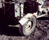 眾所周知,月球表面都被厚厚的月塵覆蓋,美國宇航員拍攝了很多他們在月球上留下的腳印。月球和火星異常現(xiàn)象研究專家約瑟夫·斯金波對這些證據(jù)一直心存質(zhì)疑。從美國宇航員的照片上看,他們的月球車?吭诘顷懪摵苓h的地方,圖片上沒有車轍痕跡,就好像那輛登陸車是從太空艙飛過去的!拔覀儺斎豢梢约僭O(shè)月球表面十分堅硬,不足以讓登陸車留下痕跡。可是,在登陸車旁邊卻有很多腳印,甚至在登陸車的下面也能看到!