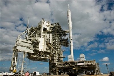 “戰(zhàn)神I-X”的高度超過了美國自由女神像,工程師用了整整一夜時間才將其從飛機棚拖到發(fā)射臺。從飛機棚到發(fā)射臺雖只有6.4公里,但工程師們卻用了7個多小時。該火箭耗資4億4500萬美元。