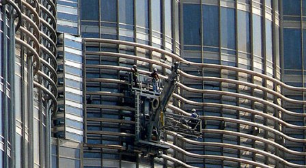 中新網(wǎng)1月6日電 被一根繩子吊在窗外,冒著生命危險(xiǎn)為摩天大樓擦洗窗戶的擦窗工人可謂是一份需要勇氣的職業(yè),而又有誰(shuí)能夠想象為“世界第一高塔”迪拜哈利法塔擦洗窗戶的工人該是多么“偉大和勇敢”。