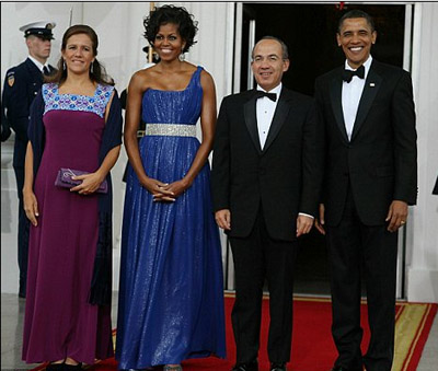 在宴會上,奧巴馬與卡爾德龍為兩國友誼互相祝酒。此次國宴,奧巴馬夫婦再次邀請了他們喜歡的高級廚師里克•貝雷斯準備菜肴。