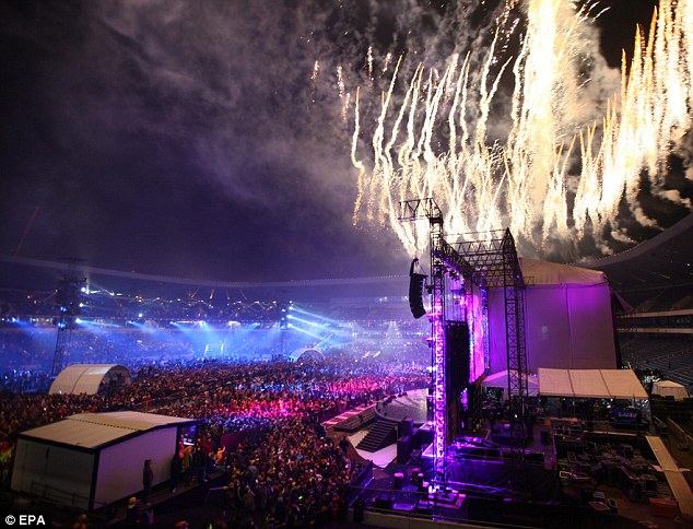 演唱會(huì)由傳統(tǒng)的非洲舞曲拉開序幕。之后美國(guó)樂(lè)隊(duì)黑眼豆豆一襲角斗士扮相登上舞臺(tái),為觀眾送上三首經(jīng)典曲目,引爆全場(chǎng)熱情。