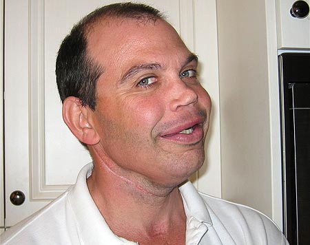 醫(yī)生截取其肋骨和臀骨植入面部,重塑鼻子和下巴;又以腿部動(dòng)脈挪到頸部,手腕皮膚則移植到下臉部。經(jīng)過連串手術(shù),加萊格一年不能說話,其中兩周更不能飲食。他還要頻頻進(jìn)入氧氣室,以刺激面部新血管生長。