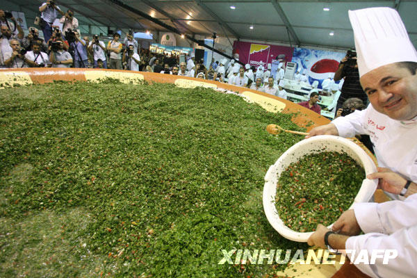 中新網(wǎng)10月27日電 黎巴嫩在組織政府方面問題多多,但在締造世界紀錄方面卻不落人后。前天,黎巴嫩廚師制作了一道重約3.175噸(3175公斤)的塔博勒沙拉(tabbouleh),創(chuàng)造了今年來的第三個吉尼斯世界紀錄。