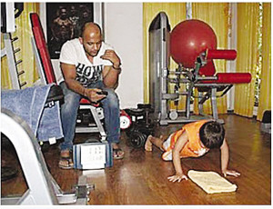 父母于是請來印度著名的私人健身教練薩特亞吉特·喬拉西亞對羅納克進(jìn)行更為專業(yè)的體能訓(xùn)練。據(jù)悉,健身教練喬拉西亞專門負(fù)責(zé)訓(xùn)練印度的名人和演員。過去2年來,羅納克每周都會前往健身房訓(xùn)練數(shù)次,在健身教練喬拉西亞的指導(dǎo)下,利用啞鈴和杠鈴?fù)瓿筛鞣N高強度的器械練習(xí)。最折磨人的是,每次訓(xùn)練時,健身教練喬拉西亞還會拿著一塊秒表掐算時間,督促羅納克在最短時間內(nèi)做成百上千個俯臥撐,以此增加他的體能和耐力。在跟隨健身教練喬拉西亞進(jìn)行了2年“魔鬼訓(xùn)練”后,羅納克將自己鍛煉成了一個擁有結(jié)實肌肉和驚人力量的“大力士”。日前,羅納克竟在短短40分鐘時間里,一口氣接連做了多達(dá)1500個俯臥撐,從而創(chuàng)下了一項新的印度全國紀(jì)錄!當(dāng)羅納克完成這一壯舉的錄像片段在網(wǎng)上曝光之后,許多人都看得目瞪口呆,無法相信自己的眼睛。