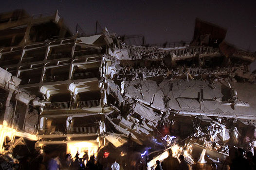 爆炸中,酒店大堂和一樓被炸壞,附近建筑的很多玻璃也被震碎。還有人聲稱在5公里之外都感受到了爆炸的威力。當?shù)鼐椒Q,武裝分子使用了500公斤左右的炸藥。