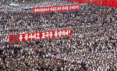 中新網(wǎng)6月26日電 據(jù)美聯(lián)社等媒體報(bào)道,在朝鮮戰(zhàn)爭(zhēng)爆發(fā)59周年之際,10萬(wàn)平壤市民25日在金日成廣場(chǎng)舉行了大規(guī)模反美集會(huì)(見圖),高呼打倒“美帝國(guó)主義”的口號(hào),場(chǎng)面十分壯觀。金日成和金正日的畫像以及反美標(biāo)語(yǔ)到處可見。