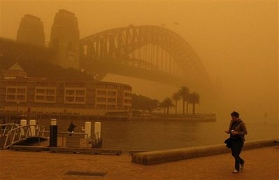 上個(gè)月是澳洲歷來(lái)最炎熱的一個(gè)月份,加上歷時(shí)長(zhǎng)達(dá)10年的旱災(zāi)累積了大量沙塵,結(jié)果在強(qiáng)風(fēng)吹襲下,形成了這股自1942年以來(lái)侵襲悉尼的最嚴(yán)重沙塵暴。