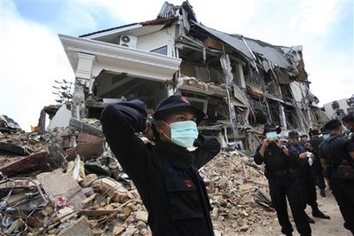 印尼“西蘇門答臘省”首府“巴東”地區(qū)星期三下午發(fā)生里氏7.6級(jí)強(qiáng)震,緊接著第二天早上又發(fā)生一起6.6級(jí)的余震,對(duì)當(dāng)?shù)卦斐蓮?qiáng)大的破壞力,不僅災(zāi)區(qū)被夷為平地,而且斷水?dāng)嚯娪謹(jǐn)嘤,?lián)外道路也不通,當(dāng)?shù)剡遭滂沱大雨襲擊,使得災(zāi)情更加惡化,救災(zāi)困難重重。