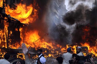 中新網(wǎng)10月29日電 據(jù)美聯(lián)社報(bào)道,當(dāng)?shù)貢r(shí)間28日,巴基斯坦西北部城市白沙瓦一處繁華的集市遭威力強(qiáng)大的汽車炸彈襲擊,襲擊已經(jīng)造成105人死亡,其中至少60人為婦女和兒童,爆炸另造成200多人受傷。