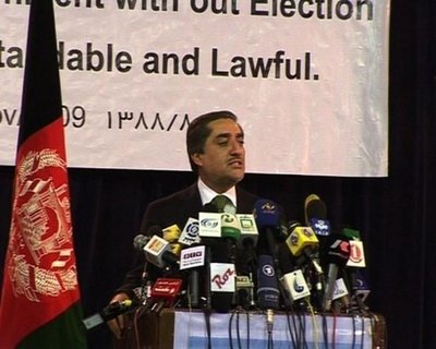阿卜杜拉當(dāng)天在喀布爾舉行的新聞發(fā)布會(huì)上說:“我不會(huì)參加11月7日的選舉,因?yàn)椴豢赡芘e行透明的選舉! 阿卜杜拉告訴自己的支持者,他在“廣泛征求民眾意見”后作出這一“艱難的決定”。阿卜杜拉還表示,他不相信在不撤換選舉委員會(huì)負(fù)責(zé)人的情況下能夠舉行一場自由和公平的選舉,因?yàn)樵撐瘑T會(huì)對第一輪選舉中的舞弊行為負(fù)有責(zé)任。但當(dāng)被問及是否呼吁抵制第二輪選舉時(shí),阿卜杜拉回答道:“我沒有發(fā)出那個(gè)號(hào)召!