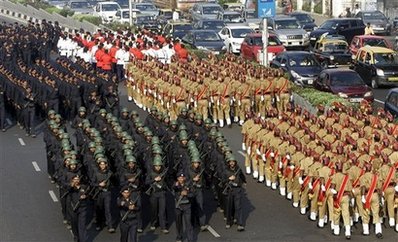 中新網(wǎng)11月26日電 綜合外電報道,25日,印度警察列隊走過孟買幾處標(biāo)志性建筑,并向公眾展示了新式裝甲車和武器,以紀(jì)念孟買恐怖襲擊事件一周年。