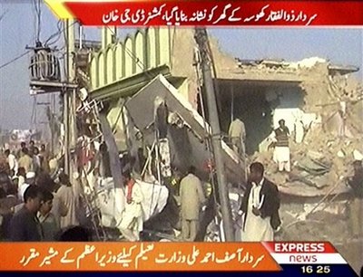 此次爆炸明顯針對當?shù)卣吖僮衾辗瓶?科薩(Zulfiqar Khosa),雖然爆炸造成科薩的住宅嚴重受損,但該官員當時并未在家。傷亡人員絕大多數(shù)為在附近市場里的平民。