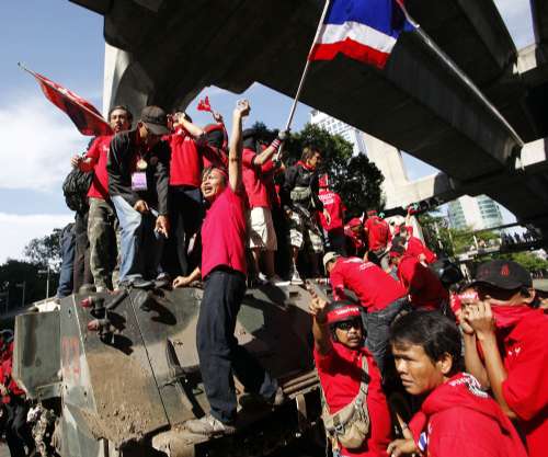 局勢緊張,泰國總理阿披實(shí)取消原定于13至17日訪問澳洲的行程,10日主持國內(nèi)安全行動(dòng)指揮部會(huì)議,任命總理秘書長戈沙.沙帕瓦蘇為首席談判代表,負(fù)責(zé)與“紅衫軍”核心成員溝通以確保集會(huì)和平有序。負(fù)責(zé)控制局勢的安全部隊(duì)將只佩帶警棍而不攜帶槍枝,但武裝人員將隨時(shí)待命,在出現(xiàn)突發(fā)事件時(shí)快速部署。