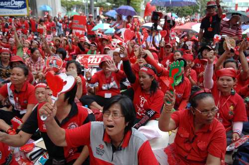 當(dāng)時(shí)在總理府前的示威民眾只剩下幾千人,但今年在拉差巴頌路口的“紅衫軍”,根據(jù)警方第一天推估至少有三萬人。納塔武表示,“紅衫軍”至少會(huì)留在那里到4月20日以后,聽聽選舉委員會(huì)如何對(duì)執(zhí)政的民主黨解散案做出決定。
