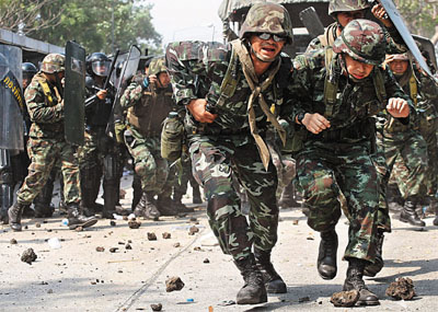 中新網(wǎng)4月10日電 據(jù)香港《文匯報》10日報道,泰國反政府“紅衫軍”繼續(xù)不理會緊急狀態(tài)令,昨日發(fā)起大游行,沖擊被禁播的電視臺,政府遂于連場示威中首次動武,軍警施放催淚彈及水炮,但仍然無果,最后棄械撤退,紅衫軍成功占領(lǐng)電視臺。傍晚多個商場的顧客及員工被促離開,傳警方部署在6個地點拘捕示威領(lǐng)袖,并在一個集會地點清場。