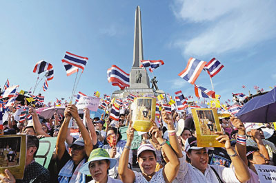 紅衫軍昨日繼續(xù)占領(lǐng)市中心拉差巴頌路口以及繁華橋一帶。示威領(lǐng)袖打算明日發(fā)動(dòng)新一輪游行,示威地點(diǎn)仍有待商討。據(jù)悉,部分領(lǐng)袖打算游行到金融中心是隆路,針對(duì)盤谷銀行總行等金融機(jī)構(gòu)總部發(fā)動(dòng)示威。有領(lǐng)袖指責(zé)盤谷銀行為“貴族象征”,呼吁支持者關(guān)閉該行戶口。