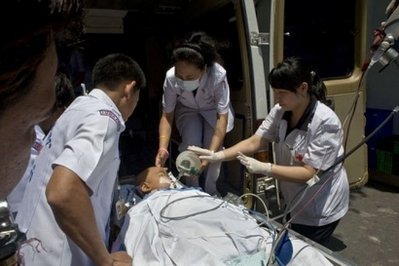 中新網(wǎng)5月1日電 據(jù)“中央社”報(bào)道,泰國(guó)反政府紅衫軍29日闖入朱拉醫(yī)院搜查,以為軍人鎮(zhèn)守大樓準(zhǔn)備驅(qū)離行動(dòng),紅衫軍領(lǐng)袖30日致歉并清出部分路障供救護(hù)車(chē)與病人進(jìn)出,但已有逾1000名病人轉(zhuǎn)院。
