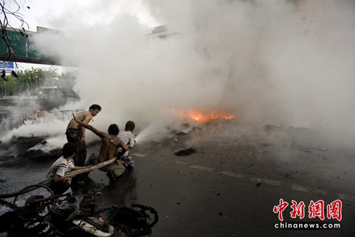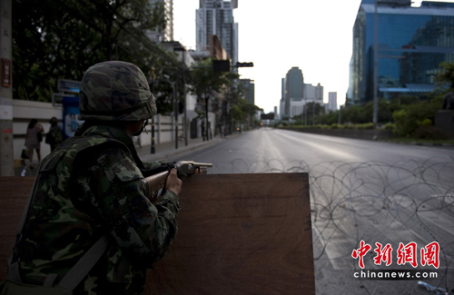 5月13日晚,泰國軍方封鎖紅衫軍示威地點,試圖結(jié)束示威活動。雙方因此發(fā)生嚴重暴力沖突,不斷造成人員傷亡。