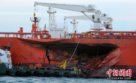馬來西亞海事執(zhí)法局表示,載有6.2萬噸原油的油輪左舷艙被劃出一道10米長的裂縫,已被拖往樟宜港維修,而肇事貨輪仍停泊在撞船現(xiàn)場。撞船地點(diǎn)位處繁忙的商業(yè)航道。新加坡是全球最繁忙的港口之一,亦是亞洲的石油貿(mào)易中心。
