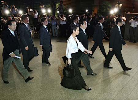 8日晚,日本天皇在天皇宮中舉行儀式,任命菅直人擔(dān)任日本新首相,同時(shí)一一任命了其它17名大臣。天皇對(duì)每一位大臣說(shuō):“肩負(fù)重責(zé),辛苦你了”。