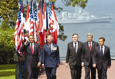 會(huì)面后,4人之后會(huì)一同前往美軍墓園,與英國(guó)首相布朗、英國(guó)王儲(chǔ)查爾斯和加拿大總理哈珀會(huì)合。奧巴馬在墓園內(nèi)向包括200名美國(guó)退役軍人的9000人發(fā)表講話(huà)。