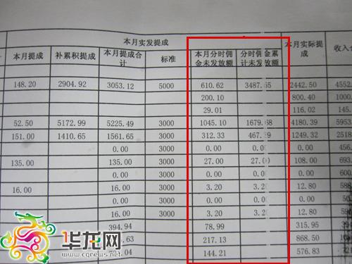 員工工資表上明確顯示的“分時傭金”扣除情況 王森 攝