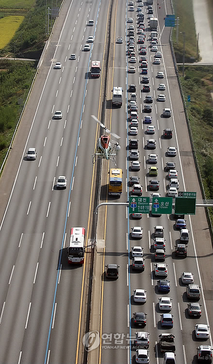 不過(guò)到了中午以后,由首爾市中心通往郊區(qū)的路段逐漸開(kāi)始堵塞,車輛忽行忽停。據(jù)道路公社早前預(yù)測(cè),至1日晚12時(shí),將有39萬(wàn)車輛利用高速公路前往地方。