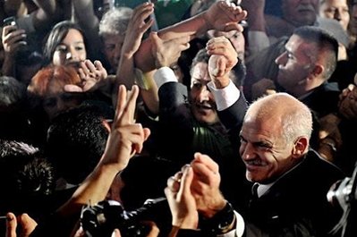 據(jù)英國廣播公司報(bào)道,初步點(diǎn)票結(jié)果顯示,帕潘德里歐領(lǐng)導(dǎo)的“泛希臘社會(huì)主義運(yùn)動(dòng)”獲得的選票超過執(zhí)政黨新民主黨八個(gè)百分點(diǎn)以上。這表明他們能夠在議會(huì)中獲得絕對多數(shù)的席位。之后,希臘總理卡拉曼利斯承認(rèn)大選失利。