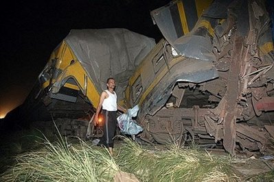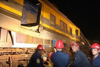 一列預(yù)定前往南方阿斯旺(Aswan)的火車,24日行駛到開羅附近40公里的吉薩(Giza)時,遭另一列火車從后方追撞,造成其中一節(jié)車廂翻覆。由于出事地點(diǎn)靠近運(yùn)河,救難人員必須以樹干搭起克難的橋梁,將傷者從火車上救出。