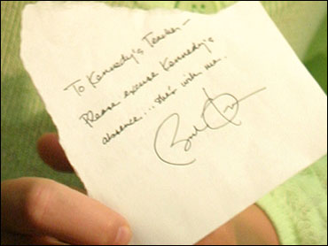 柯普斯說(shuō):“她叫肯尼迪。隨后,肯尼迪穿過(guò)人群去領(lǐng)奧巴馬幫她寫(xiě)的假條,奧巴馬則專心聽(tīng)她父親提的健保問(wèn)題。