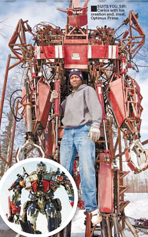 31歲的卡洛斯·歐文斯是美國阿拉斯加州瓦斯拉市的一名前美軍機械師,同時也是一名《變形金剛》系列電影的忠實粉絲。由于職業(yè)關(guān)系,卡洛斯平時特別喜歡擺弄各種機械零件,因此多年來他一直渴望造出一個《變形金剛》電影中那樣威力無比、并可任意變形的“機械戰(zhàn)士”。