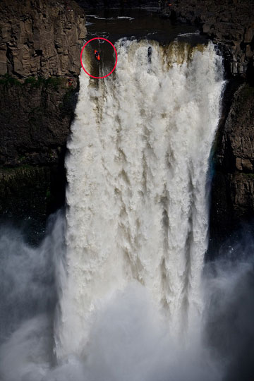 為了為此次降落做準備,來自蒙塔納的布蘭特此前曾經嘗試在俄勒岡的瀑布乘著皮劃艇從70-80英尺高的瀑布頂端降落。他最大的創(chuàng)舉是于2007年在加拿大西北領地的亞歷山大瀑布,乘皮劃艇從107英尺高的瀑布降落。