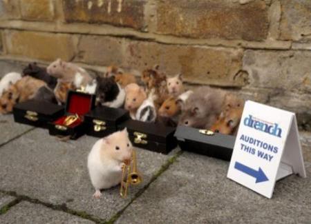 這項活動一推出,英國民眾便紛紛幫自家的倉鼠拍攝音樂視頻并寄給主辦單位。主辦者餓專門制作了一批迷你樂器——如豎琴、迷小號、薩克斯管、長號、小鼓等——給倉鼠們使用,并在咖啡館外進行了一輪又一輪的“海選”。