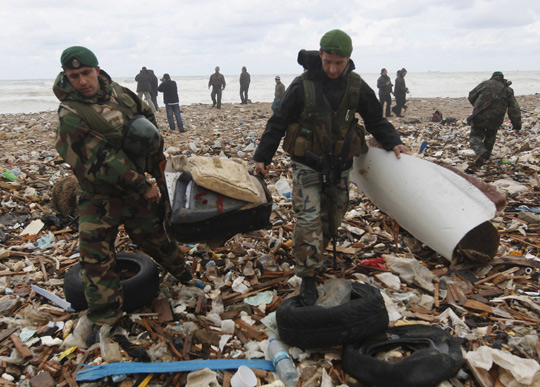 目前,有關(guān)方面已經(jīng)鎖定了飛機(jī)墜海的地點,為黎巴嫩沿海小鎮(zhèn)納阿梅以西約3.5公里海域。飛機(jī)墜毀后幾個小時,一些殘骸和機(jī)上物品被沖上了附近的海岸,包括座椅、嬰兒鞋、滅火器、手提箱和藥瓶等。