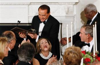 中新網(wǎng)10月16日電 據(jù)美聯(lián)社報道,意大利總理貝盧斯科尼13日晚上在白宮做客時鬧出笑話,他不小心撞壞演講臺,他不得不手扶演講臺完成祝酒辭,讓在座的人士大笑。