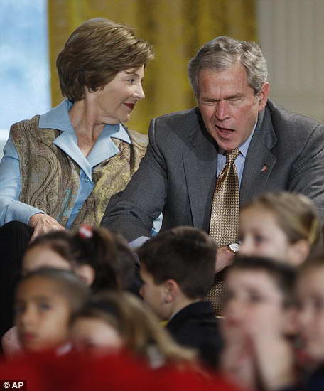 12月8日,布什面對(duì)的觀眾不是處處與其作對(duì)的國(guó)會(huì),也不是叫不上名字的外國(guó)政要,而是受邀來(lái)白宮參加特別圣誕晚會(huì)的小客人們。這些小客人們的父母由于在美軍服役而無(wú)法在圣誕節(jié)的時(shí)候與他們共度節(jié)日。布什邀請(qǐng)他們參觀白宮,觀看一個(gè)以圣誕為主題的節(jié)目表演。