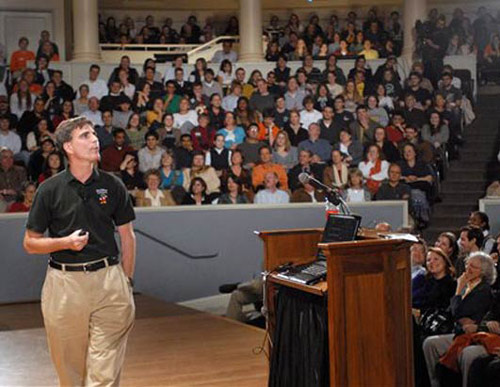 保施被評為2008年最具鼓舞人心的人。2007年8月,他得知自己患上胰腺癌,生命只剩下幾個月。去世之前,通過他的著名演講《最后一課》的視頻和書,鼓舞了成千上萬的人們。這篇演說反響極大,全球數(shù)百萬人觀看了網(wǎng)上視頻,美國廣播公司將他選為“2007年年度人物”之一,《時代》雜志將他列入了“世界上影響最大的100人”,同名書籍至今仍然排在“建議類暢銷書”的榜首。這張照片是保施2007年11月27日,在弗吉尼亞大學(xué)禮堂中做最后一次演講時的情景。