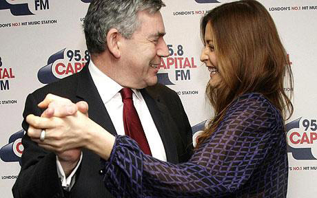 英國(guó)首相戈登·布朗11日出席倫敦一家廣播電臺(tái)的開業(yè)大典,與被稱為“英國(guó)保養(yǎng)最好的模特”的麗莎·史諾頓共舞。風(fēng)度翩翩的首相立刻迷倒一大片女性觀眾。