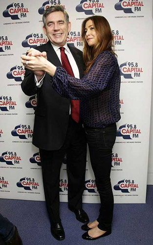 據(jù)英國(guó)媒體披露,11日首相布朗應(yīng)邀參加總部設(shè)在倫敦的“全球廣播電臺(tái)”的開業(yè)典禮,擔(dān)當(dāng)剪彩嘉賓。英國(guó)著名女主播麗莎·史諾頓也在受邀之列。剪彩后鑒于主持人的要求,兩人在偌大的舞廳里翩翩起舞。布朗精湛的舞技贏得美女名模兼主播的稱贊和掌聲。