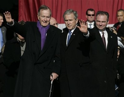 布什總統(tǒng)站在“H.W.布什號”上,對著記者和海軍人員發(fā)表演講時(shí)表示,登上這艘“令人敬畏”的航母,向一位 “令人敬畏”的前總統(tǒng)致以最高的敬意,他感到非常激動(dòng)。布什(62歲)說,為了寫好這篇演講稿,他找出父親的舊信件研究一番,發(fā)現(xiàn)40年代末的一封信中提到長子喬治(現(xiàn)任總統(tǒng)布什)。