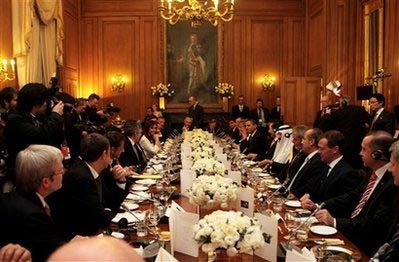 據(jù)《衛(wèi)報》4月2日披露,作為東道主,英國首相布朗坐在了橢圓形宴會桌主人應(yīng)該坐的位置上,中華人民共和國主席胡錦濤坐在他右側(cè),印尼總統(tǒng)蘇西洛坐在布朗的左側(cè),約旦國王阿卜杜拉二世坐在布朗的正對面。據(jù)悉,布朗將私下會晤阿卜杜拉,兩人將就兩國之間的軍火交易進(jìn)行商談。法國總統(tǒng)薩科齊被安排坐在胡錦濤的右側(cè)。俄羅斯總統(tǒng)梅德韋杰夫被安排坐在墨西哥總統(tǒng)卡爾德龍和土耳其總理埃爾多安之間。