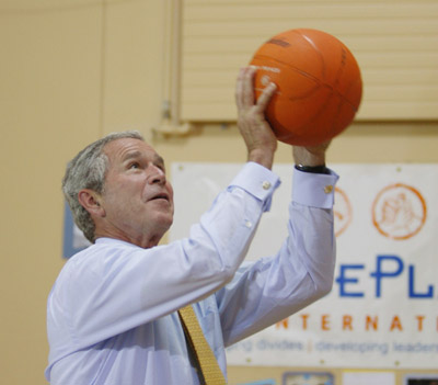 美國(guó)總統(tǒng)布什很早就預(yù)訂下了中美籃球賽的門(mén)票。