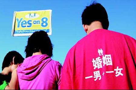 在11月4日舉行的美國大選投票中,一項反對同性婚姻的提案因為得到超過半數(shù)選民的支持而獲得通過。這一被稱為“8號提案”的加州立法提案在選舉之前引起廣泛關(guān)注:投票結(jié)果顯示有大約52.5%的加州選民支持這一提案,而選舉結(jié)果的公布也意味著在加州實行了幾個月的同性合法婚姻制度的夭折。