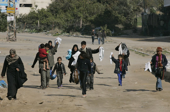 還是從4日說(shuō)起吧,那天清晨,在位于加沙城西部的南里馬勒居民區(qū),居民們聽(tīng)說(shuō)了以色列地面部隊(duì)攻占前猶太定居點(diǎn)尼察里姆的消息。這個(gè)地方在南里馬勒以南,相距不過(guò)3公里。許多人很快便決定離家避禍,轉(zhuǎn)移到遠(yuǎn)離坦克炮彈的地方去。