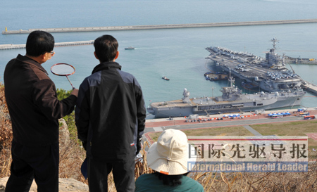 其中滿載排水量達(dá)10.2萬噸的“斯坦尼斯”號航母從加利福尼亞州圣迭戈海軍基地出發(fā),2月18日攜5000名艦員及其他4艘護(hù)艦艇抵達(dá)香港休整。2月27日上午,“斯坦尼斯”號航母編隊(duì)?咳毡咀羰辣\姼。演習(xí)期間,為防止朝鮮試射“大浦洞”2型遠(yuǎn)程彈道導(dǎo)彈,美軍出動(dòng)的“宙斯盾”級導(dǎo)彈驅(qū)逐艦達(dá)到7艘,其規(guī)模為歷次演習(xí)所罕見。