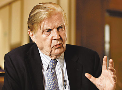 1999年諾貝爾經(jīng)濟(jì)學(xué)獎(jiǎng)得主、“歐元之父”蒙代爾(資料圖)