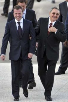 梅德韋杰夫訪問哈瓦那之前,先在委內(nèi)瑞拉與美國宿敵查韋斯總統(tǒng)會(huì)晤,磋商提供更多軍售。古巴是梅德韋杰夫這次拉美之行的第四站。此前,他先后訪問了秘魯、巴西和委內(nèi)瑞拉。