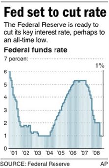 10月29日,美聯(lián)儲(chǔ)將聯(lián)邦基金利率下調(diào)至1%,創(chuàng)下了1958年以來的最低記錄。隨后,摩根大通機(jī)預(yù)計(jì)美聯(lián)儲(chǔ)將在明年1月底之前兩次下調(diào)聯(lián)邦基金利率,每次下調(diào)50個(gè)基點(diǎn),降至0%,然后將把這一基準(zhǔn)利率維持到2009年底。但分析認(rèn)為,即使聯(lián)邦基金利率降到0%,優(yōu)惠貸款利率也最多能從現(xiàn)在的4%降到3%,到那時(shí),美聯(lián)儲(chǔ)就真的“彈盡糧絕”了。